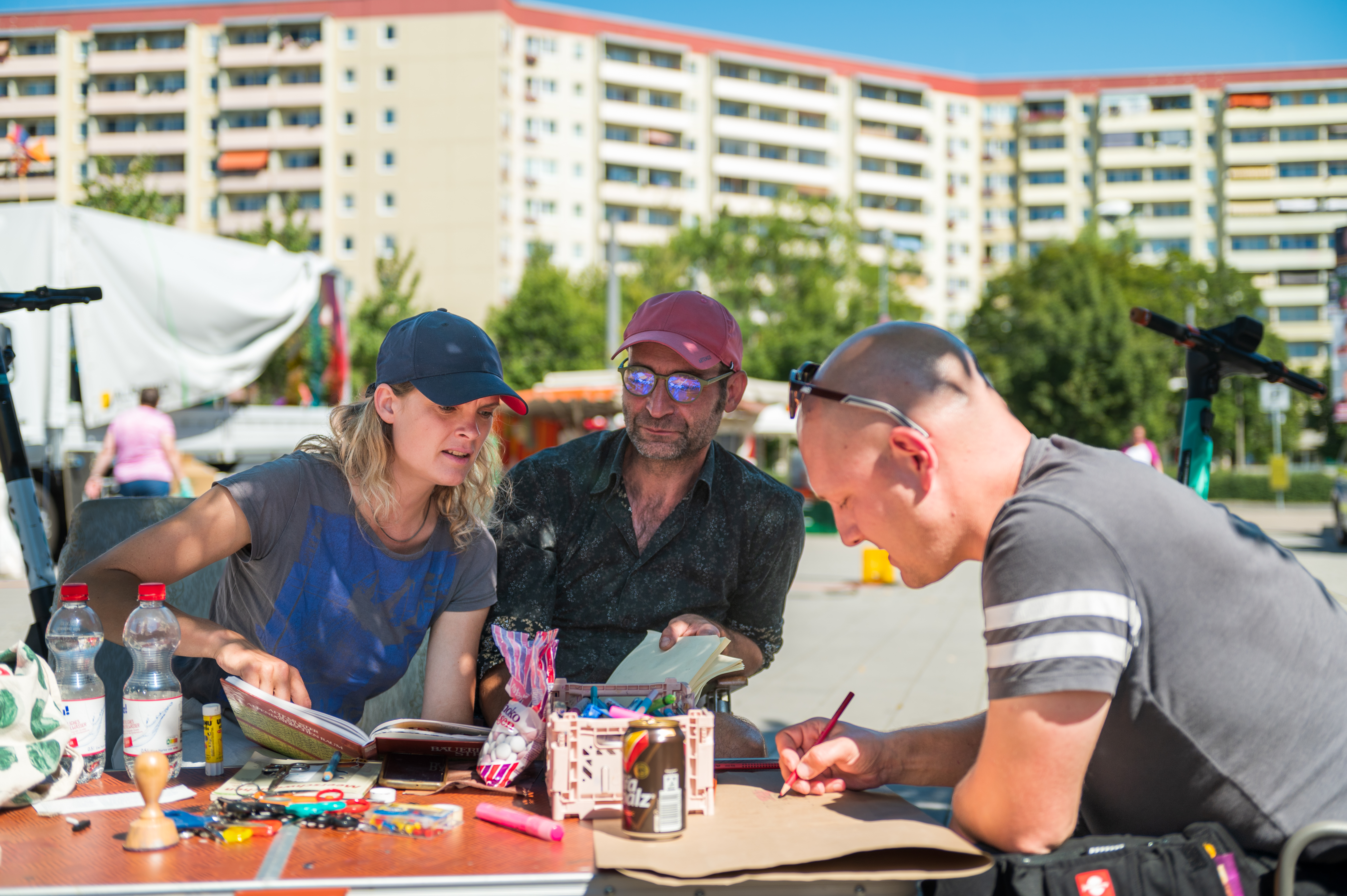 Die Wellness- und Demokratieoase auf dem Platz der Völkerfreundschaft (alter Schiffscontainer) ist ein Begegnungsort und steht Mitten im Herzen des Erfurter Rieth auf dem Platz der Völkerfreundschaft. Täglich könnt ihr hier Fürsorge und Erzählcafé, Ausstellungsfläche und partizipative Angebote und vieles mehr von Initiativen und Vereinen aus dem Quartier und ganz Erfurt erleben. Oder einfach nur unter einem Sonnenschirm verweilen.